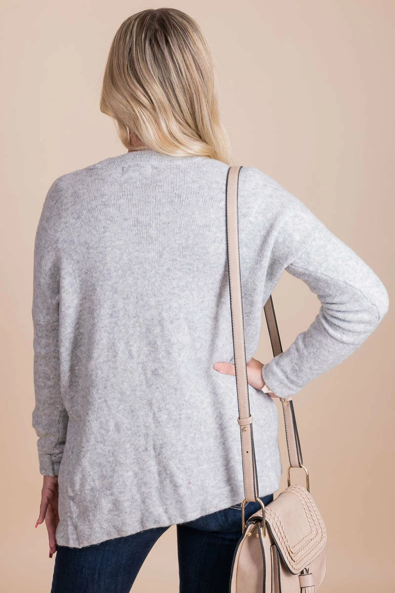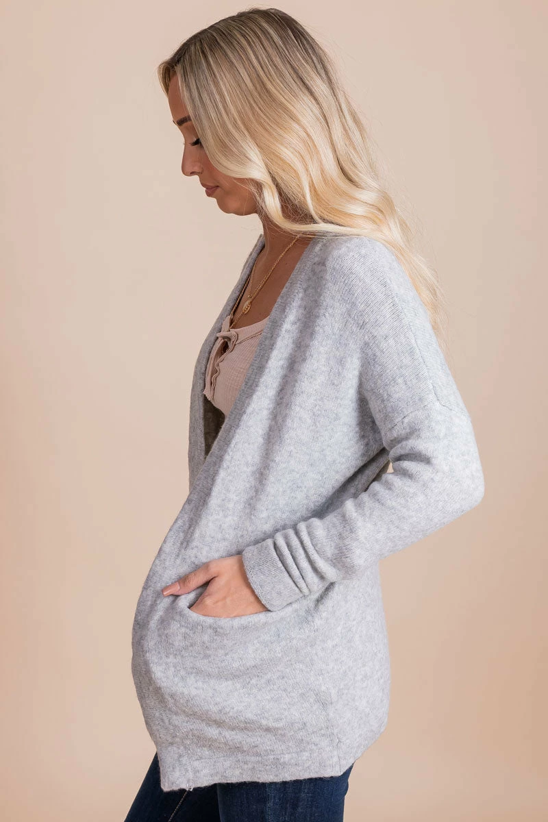 Our Inspired By You Long Sleeve Cardigan is a fall must-have! This cardigan features a speckled light gray color, long sleeves, and functional pockets! The high-quality, soft material will keep you warm all fall and winter long!