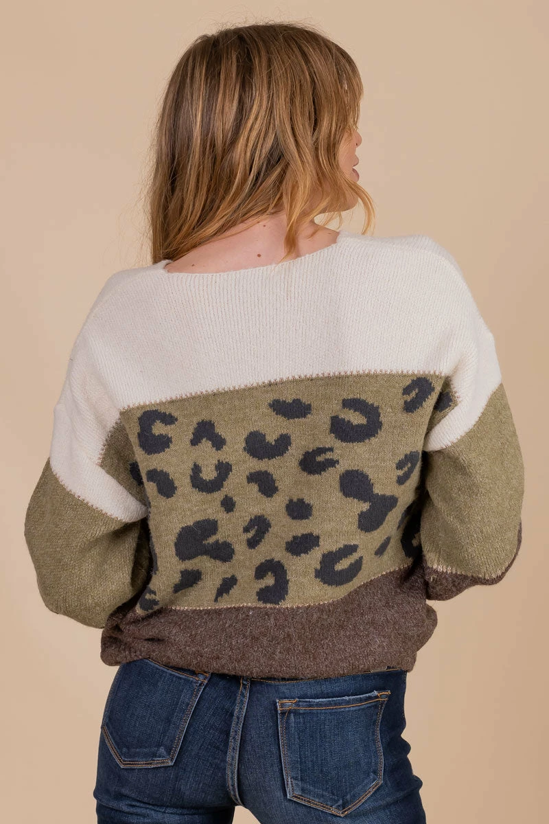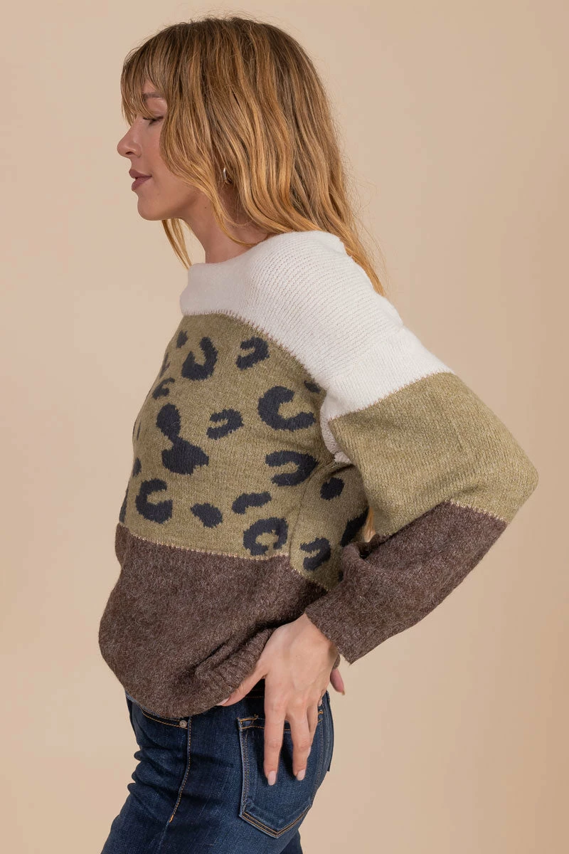 OurΒ Keep Me Close Animal Print Sweater would be so cute for a date night out, cozy evening in, or just an easy warm outfit to throw on in a rush!