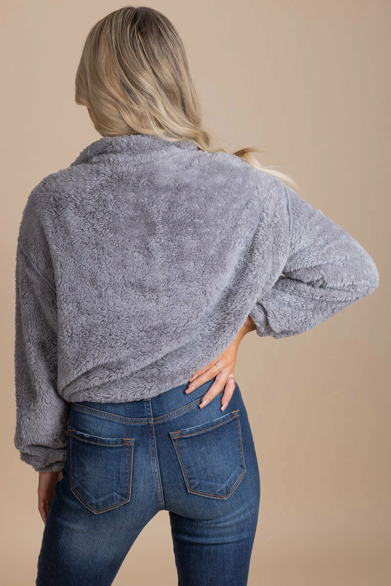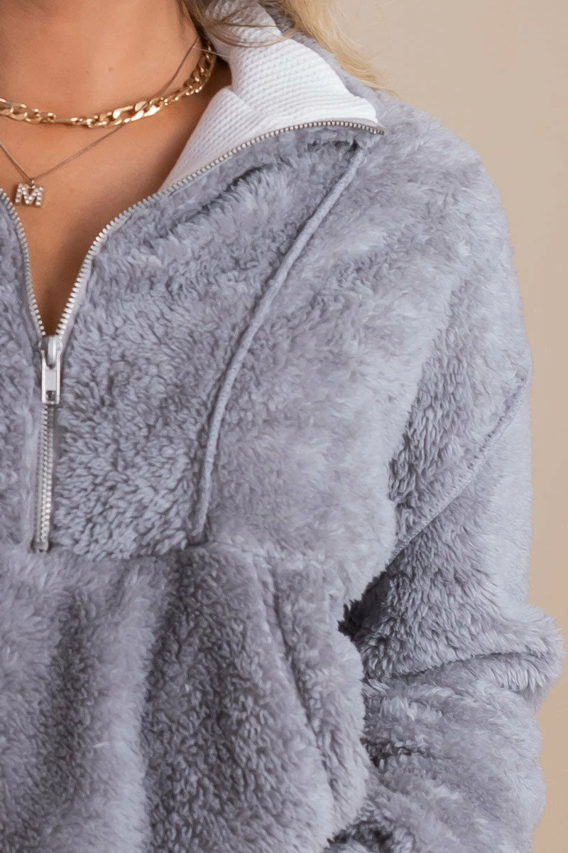 Our Cozy Morning Fleece Pullover would be perfect for a chilly winter day or lounging around the house!