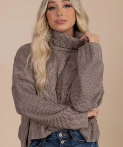 Our Toasted Maple Cable Knit Turtleneck Sweater would be perfect for a night at the pumpkin patch or corn maze, or for a special occasion!