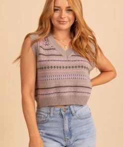 It features a unique pattern, v-neckline, and cropped length. Our favorite part of this vest is the high-quality, knit material! The flattering fit adds the perfect finishing touch.