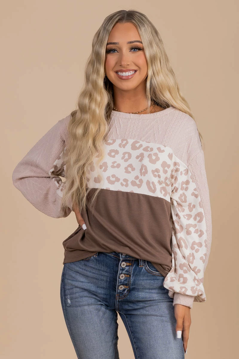 OurΒ Falling Forever Animal Print Sweater is so cute for the upcoming weather! We’re in love with the cute brown, cream, and pink panel design, love sleeves, and of course the animal print details! The long sleeves and cozy sweater material will keep you warm all season long! Pair your Falling Forever Animal Print Sweater under your favorite jacket to create a cute look so stay warm!