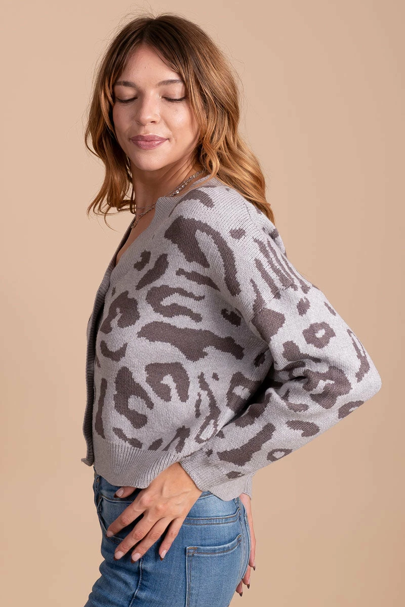 Our Kindness Is Magic Animal Print Cardigan is so cute for the upcoming chilly weather! The cropped length, animal print design, and button front detail makes this cardigan so cute! The soft, high-quality material will keep you warm and cozy all season long. Pair your Kindness Is Magic Animal Print Cardigan over your favorite turtleneck to create a trendy outfit this season!