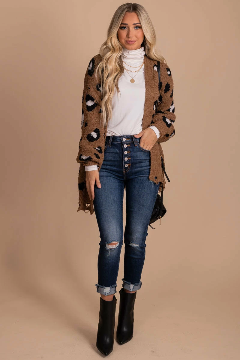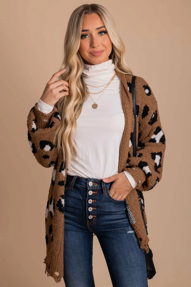 Pair your Run Wild Leopard Print Cardigan with your favorite turtleneck top and jeans for a stunning fall outfit!