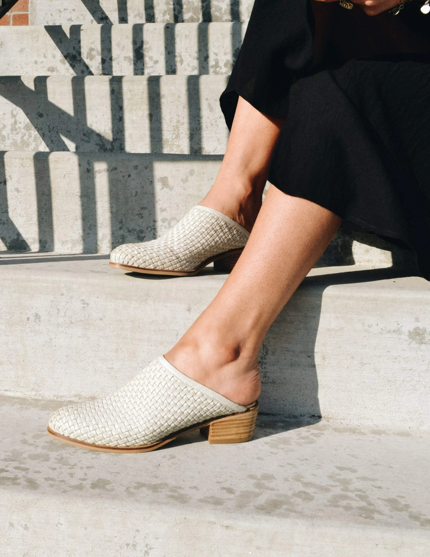 Designed with comfort in mind, the Woven One mule by Very Volatile features a genuine leather woven upper and a solid wood heel.Β Easy to slip on and off, this shoe has a padded insole for all-day wear.Β