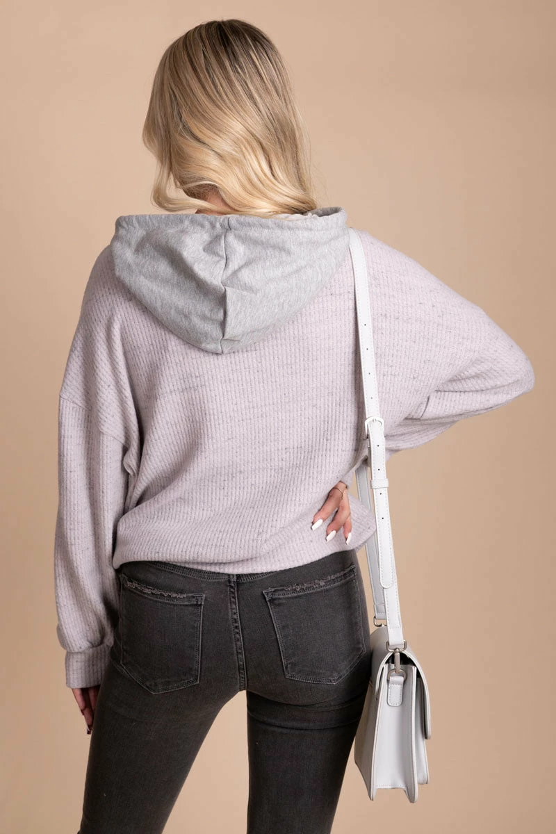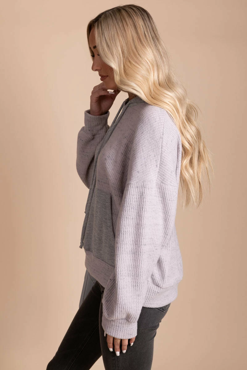 Our newΒ Be Iconic Drawstring Hooded Sweater is a fall must-have! This hooded sweater features a light lavender purple color with a gray hood and front pocket. The long sleeves and warm material makes this perfect for chilly fall weather! Pair yourΒ Be Iconic Drawstring Hooded Sweater with your favorite jeans and booties for an iconic fall outfit.