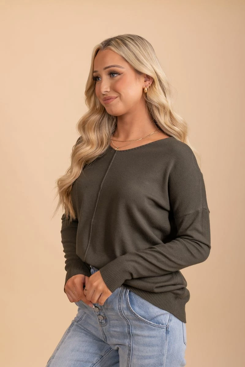 Our new Live In The Moment V-Neck Sweater is an absolute must-have for the upcoming season! ThisΒ sweater features a classic v-neckline and long sleeves. The comfortable,Β high-quality material makes thisΒ top so cozy and warm!