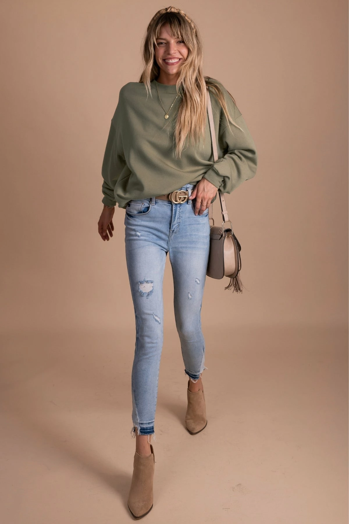 Our So Casual Fleece Crew Neck Sweatshirt is a season staple! This crewneckΒ features a classic sweatshirt style,Β comfy oversized fit, and banded cuffs and hem. The long balloon sleeves and super soft material makes this sweatshirt perfect for the chilly days ahead!